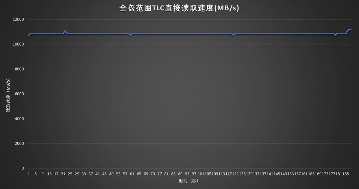 慧荣SM2504XT+BiCS8 TLC 2TB在全盘范围内TLC直接读取速度平均10.9GB/s,基本做到了表里如一。