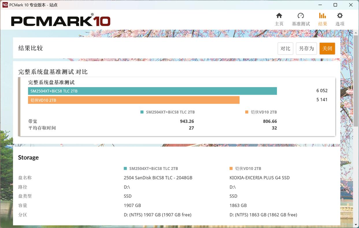慧荣SM2504XT+BiCS8 TLC 2TB在PCMark 10完整系统盘基准测试中获得6052分,相比群联PS5031-E31T方案高出18%。