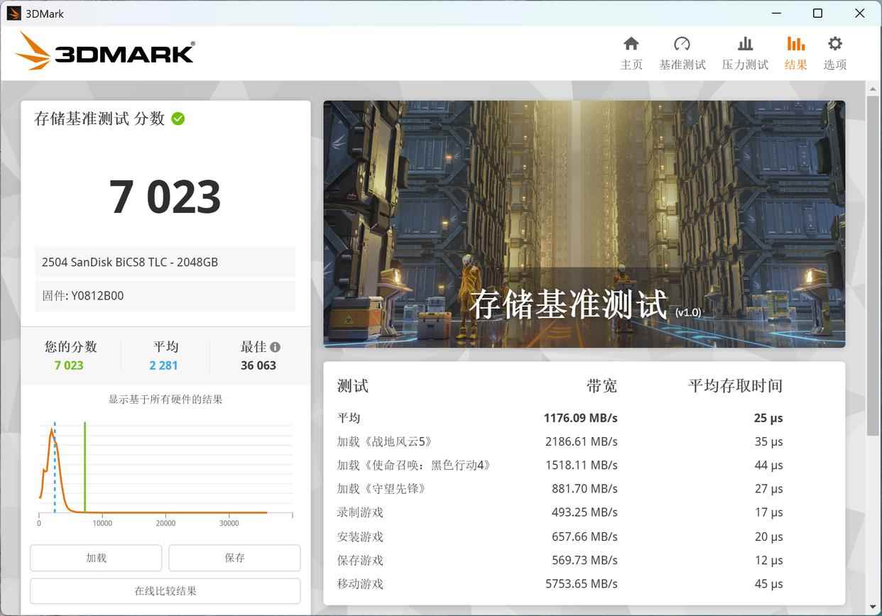 慧荣SM2504XT+BiCS8 TLC 2TB在3DMark存储基准测试中获得7023分,相比群联PS5031-E31T方案高出34%。