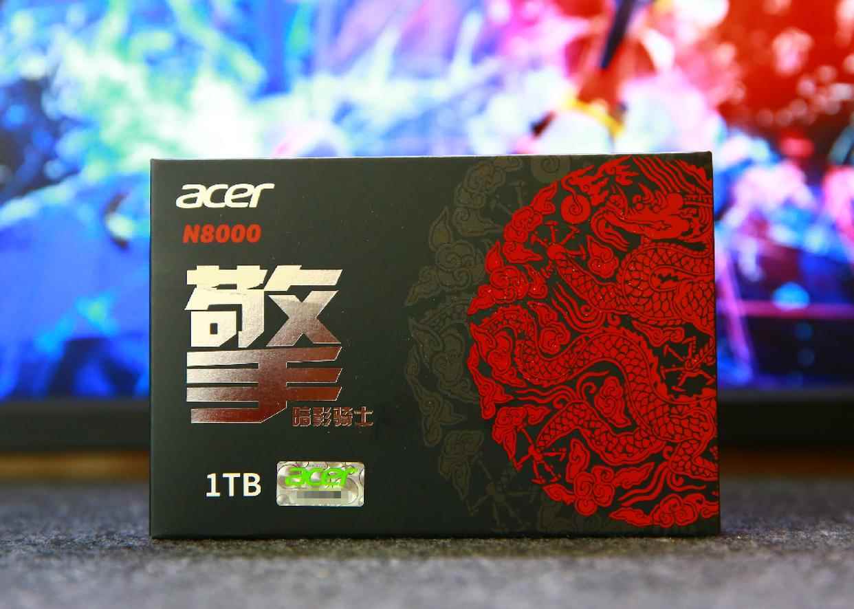 宏碁ACER N8000采用了暗影骑士系列的家族式设计风格,包装采用黑红撞色搭配,正面清晰印着品牌LOGO、产品型号,背面则简洁标注了读写速度、接口协议等核心卖点,无需拆开包装就能快速掌握关键信息。