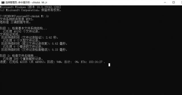 注意:这个过程可能会稍微有点长,因为它会对每一个扇区进行检查和修复。