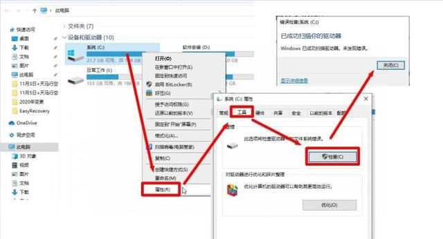 Windows系统自带的查错功能是一个非常便捷的硬盘修复手段。打开这个功能,它会自动进行硬盘检查,诊断是否存在坏道。如果查错功能检测到坏道,它会按照自身的算法进行修复操作。