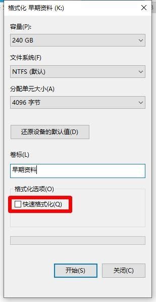 操作提示:右键点击需要修复的硬盘,选择“格式化”。在弹出的窗口中,确保“快速格式化”选项是未勾选状态,然后进行格式化。