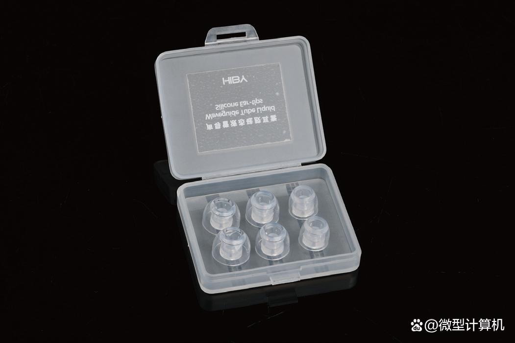 HiBy Yula采用绕耳式设计,与耳背接触的线材部分包裹有柔软的透明外被,确保接触面的舒适度。值得一提的是它的标配耳套,由HiBy自研的WG02声导管液态硅胶耳套。这种耳套选用高透细腻的抗过敏亲肤材质,既能有效隔绝外界干扰,也适合敏感肤质人群长时间佩戴。包装内附赠3对不同尺寸的耳套,并配有一个方形便携收纳盒,方便日常整理。此外,配件中还包含一个收纳袋,表面类似麂皮绒质感,触感细腻,为耳机的随身携带提供了更多选择。