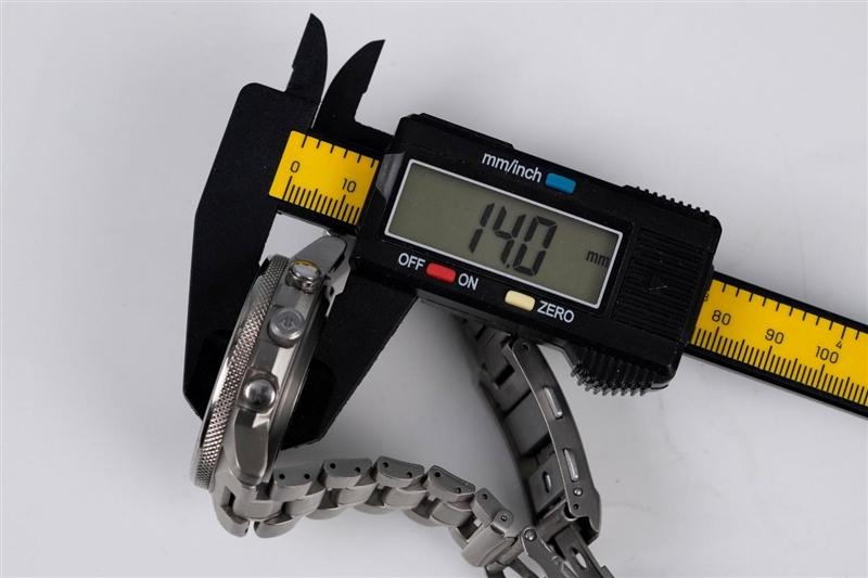 我自己的手表表盘为43mm,厚度为14mm。