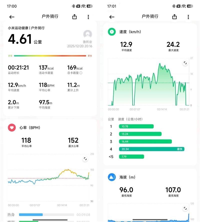 小米手表5作为小米新一代的全能旗舰手表,运动监测功能同样强大,下班骑车回家路上顺便用小米手表5记录了一下运动情况,可以看到小米手表5的监测精度和监测的数据信息量都不输专业的运动手表。