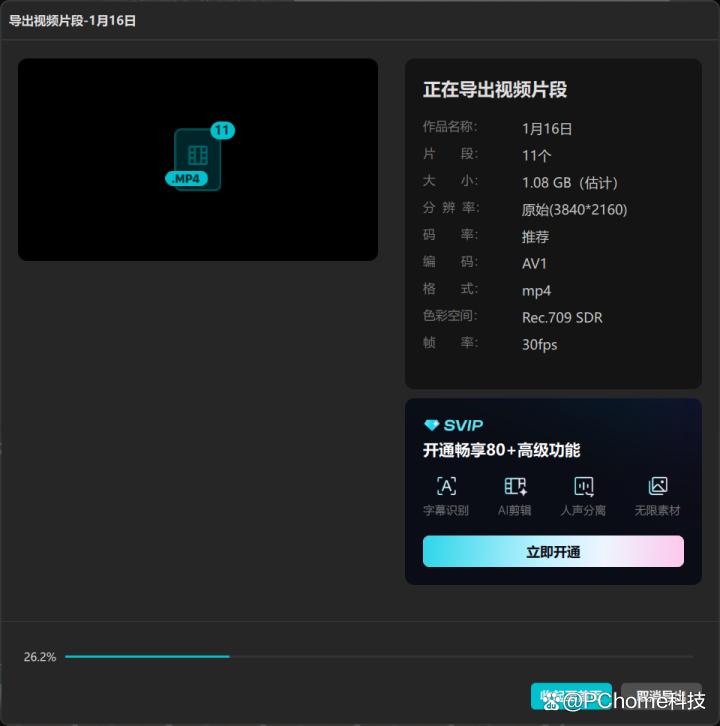 最后我们还以剪映为场景进行了实际应用测试,导出一段10分钟时长、AV1格式编码的4K 30帧视频,在技嘉AORUS RTX 5060 Ti AI BOX的帮助下,导出时长只需要95秒,比RTX 4060快了将近10%,实战表现出色。