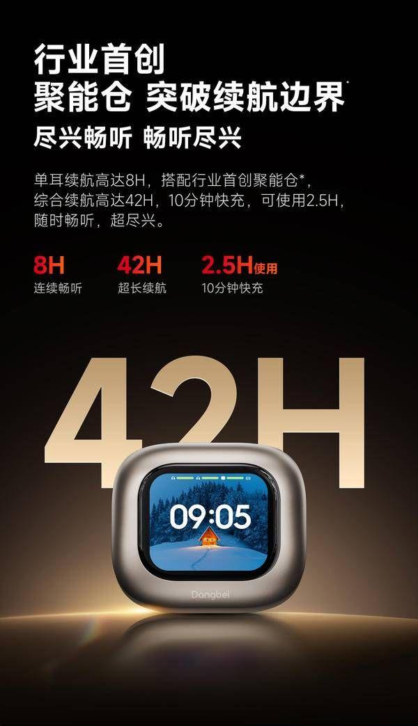针对现代人的电量焦虑,当贝耳机 Air 1 采用行业更安全的钢壳电池,单次聆听时长可达 8 小时,配合行业首创聚能仓,综合续航长达 42小时。耳机支持快充技术,充电 10 分钟即可使用 2.5 小时,彻底告别电量焦虑。