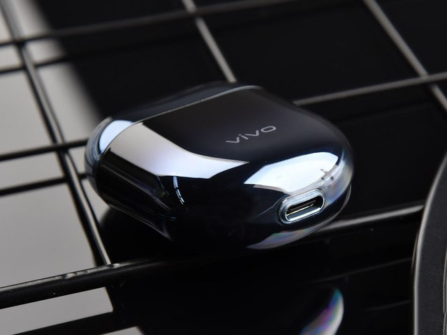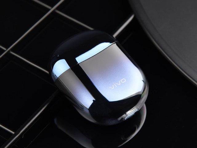 说实话,见vivo TWS Earphone的第一眼就已经惊艳到了我,深邃的幽蓝色耳机充电仓仿佛倒映着深夜星空的幽蓝星瞳。据说是借鉴了高档香水瓶的设计理念,整个充电盒的外层使用了一种特殊材质,形成了一层从深蓝到透明的渐变。而内部则采用了真空电镀打造,犹如一块蓝宝石一般。在不同光线的照射下,形成一种像悬浮在空中一般的神奇效果,堪称“悬浮美学”般的工艺品。在耳机盒的内部,留有放置两个耳机的空间,并且颜色还是一种镜面的宝石蓝色,充满了设计感。耳机盒的底部,则是一个Type-C的充电接口,十分方便。