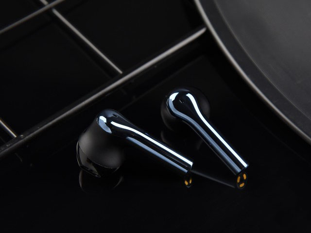 而耳机机身也毫不逊色,十分的小巧,和普通的蓝牙耳机相比,能够明显感受到耳机的耳柄更短、重量也更轻。而且耳机的机身采用的是渐变加撞色的设计工艺,在光线的照射下就如同一面镜子一般,既闪耀又充满质感。