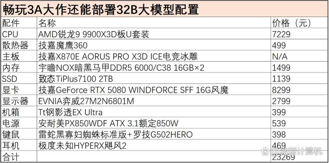 这套两万元的电脑配置把体验感拉满! 畅玩3A大作还能部署32B大模型