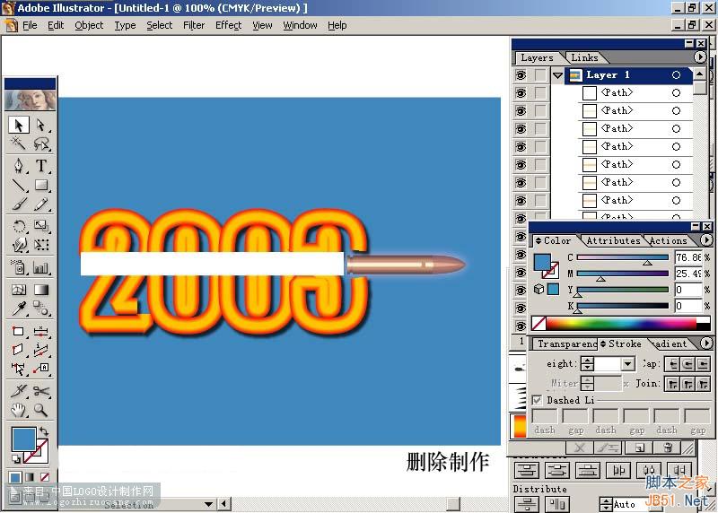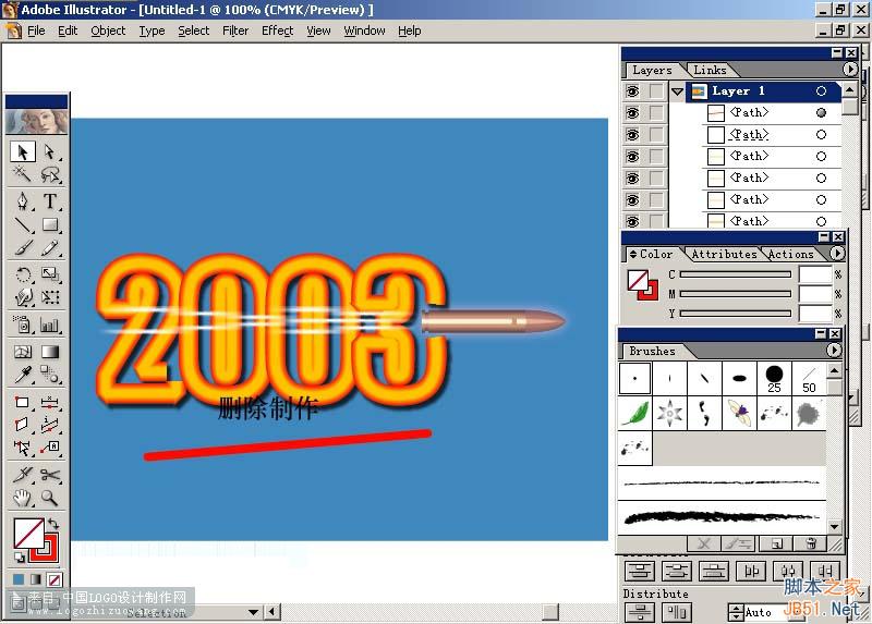 本教程是向脚本之家的朋友介绍利用AI制作子弹穿越2003效果图方法,这篇AI实例教程属于比较初级的,可能对一些高级的大侠来说,并没有多大的意义。 但是我个人认为这个教程里所涉及到了AI中很多工具的使用,如:混合、网格、蒙版、笔刷、外发光等等,很适合初学者对AI的学习和掌握。 在这里我还特别重申一点,教程只是给大家一个思路,希望大家能举一反三,这样AI的路才会越走越宽。