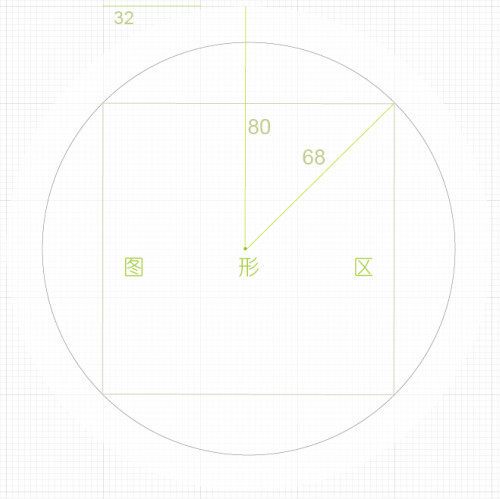 这是一个大概的预设图。圆半径为80整个圆正好占用五个32px网格。图形总元素基本尺寸(单位:px),矩形椭圆宽:20,40,70. 长:60,80. 描边大小:2,4,6 圆角:2,4,6