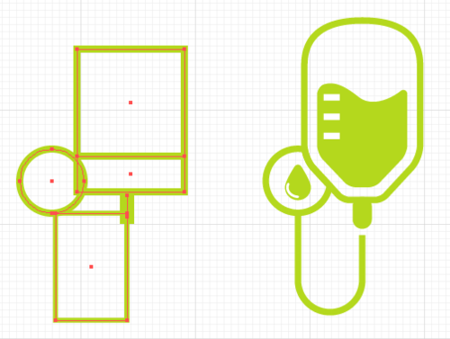 呐,第一个小图标一开始都是由矩形和线条组成的。具体摆放还有比例问题自己调节。简单说下做这个图标用到的关键步骤。