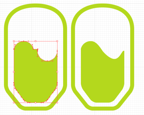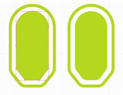 顶部直线变半圆,下部矩形框底部的两个锚点各向中心点移动八像素。