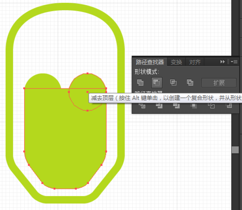 再画一个10像素的椭圆,选择路径查找器面板减去前面。