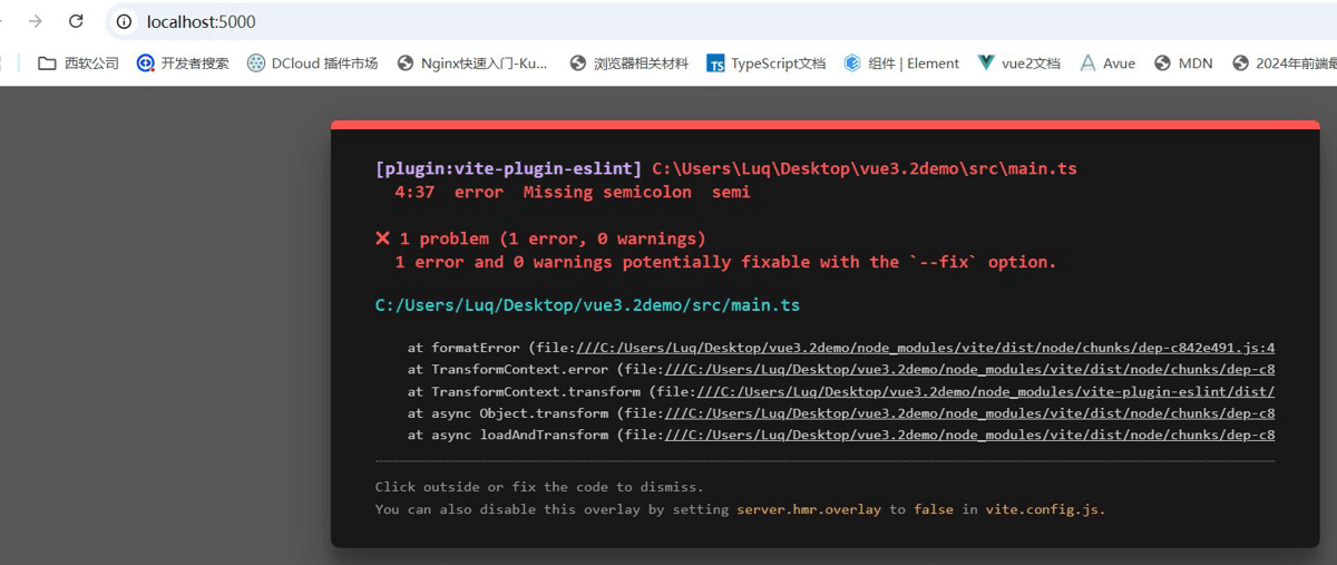 去掉 ts 中部分 分号,npm run dev运行时就会报错