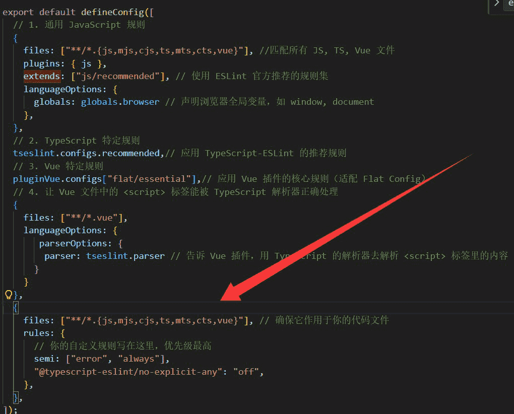 files: ["**/*.{js,mjs,cjs,ts,mts,cts,vue}"], //匹配所有 JS, TS, Vue 文件