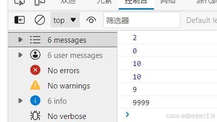 var a = 10; var b = 2; //加法运算 + console.log(a+b); //减法运算 - console.log(a-b); //乘法运算 * console.log(a*b); //除法运算 / console.log(a/b); //取余运算 % console.log(a%3); //赋值运算 同样的可以适用于 以上的其他运算符 b += 2; console.log(b); //自增运算 console.log(a++); console.log(++a); //自减运算 console.log(a--); console.log(--a);
