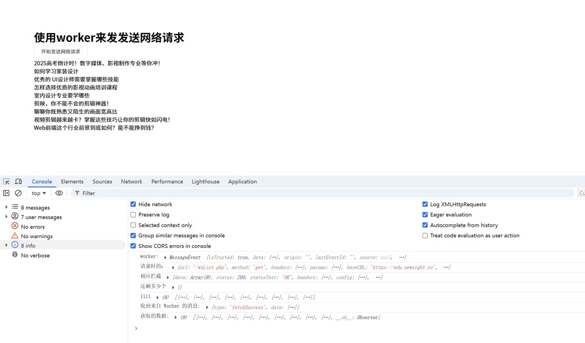 // 主线程调用worker.postMessage()方法,向 Worker线程 发消息,开始进行网络请求