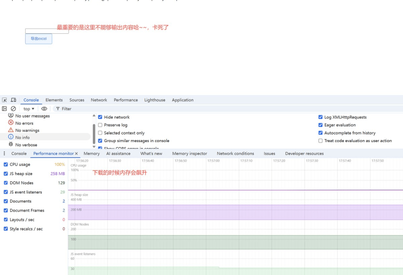也就是说:如果我在点击[导入excel]按钮后,马上又关闭点击[关闭worker],那么不能够正常导出表格。