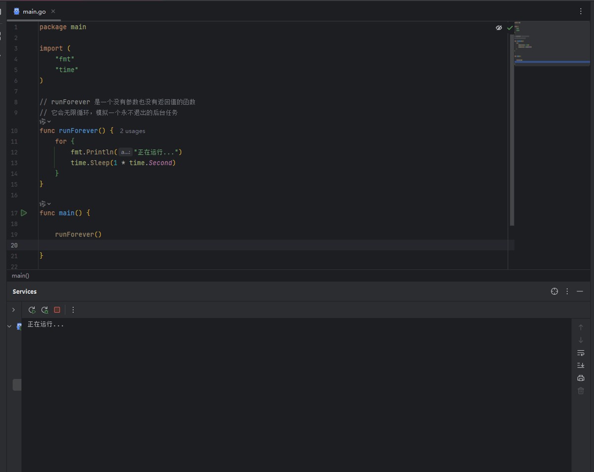 并非所有函数都需要返回值。当一个函数执行一个动作或过程,而不需要向调用者反馈结果时,可以省略返回值列表。这在初始化函数或需要持续运行的后台任务(如服务监听)中很常见。