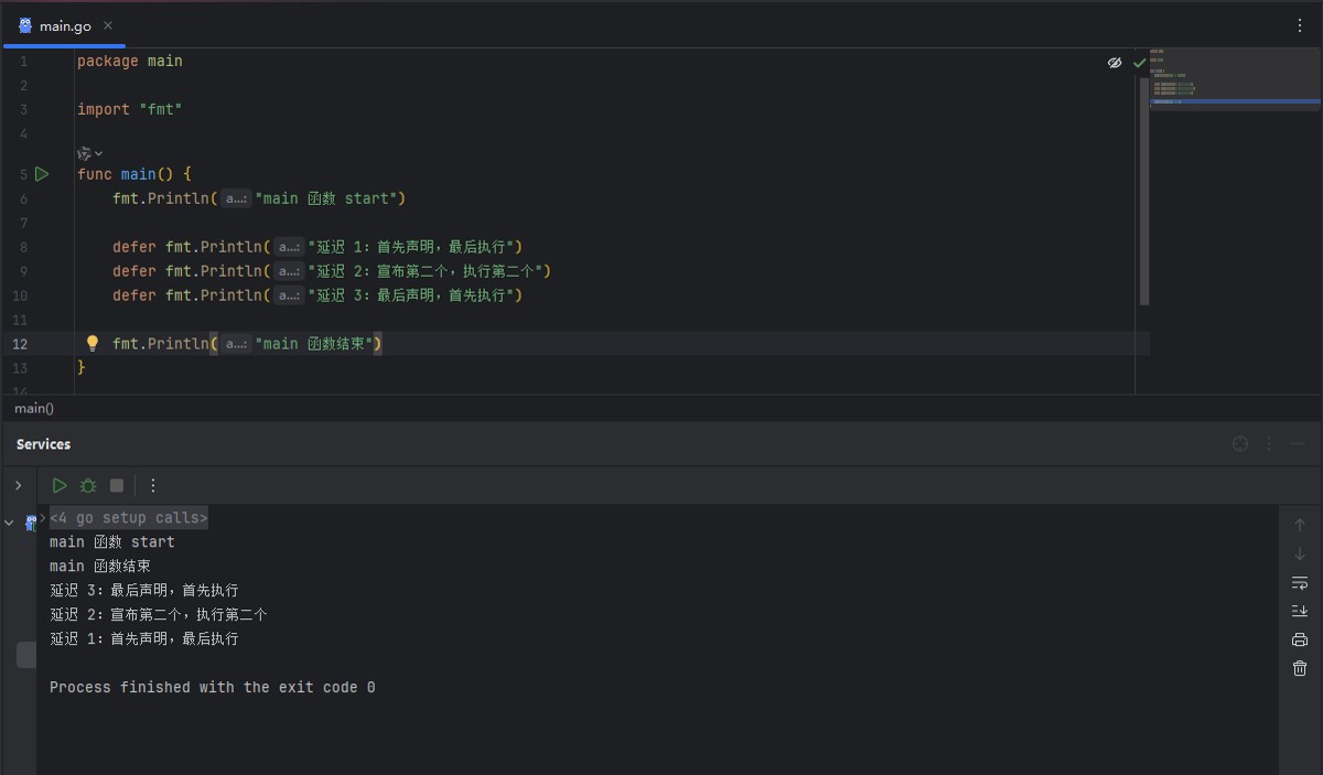 一个函数中可以有多个 defer 语句。它们的执行顺序遵循后进先出(LIFO, Last-In-First-Out) 的原则,就像栈一样。