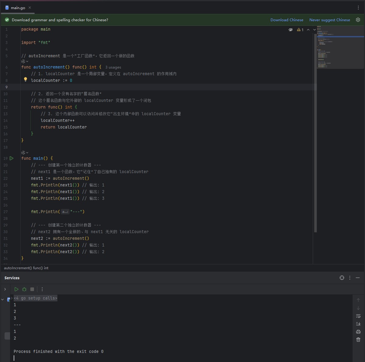 闭包是 Go 语言中一个极其有用的特性,是实现状态封装、函数式编程和并发模式(如 goroutine)的关键工具。