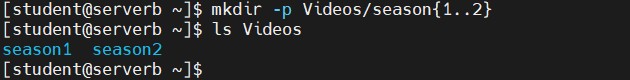 5.使用一个命令在Videos目录下创建两个子目录,名称为season1和season2,以整理电视剧集。将适当的电视剧集移到电视季子目录中。仅使用两个命令,通过相对语法指定目的地。