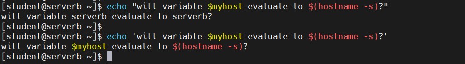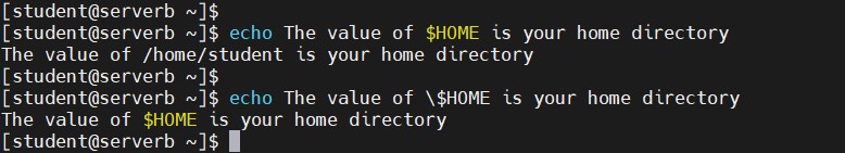 在上面的示例中,保护美元符号免于扩展,Bash将其视为常规字符,因此也就未在$HOME上执行变量扩展。