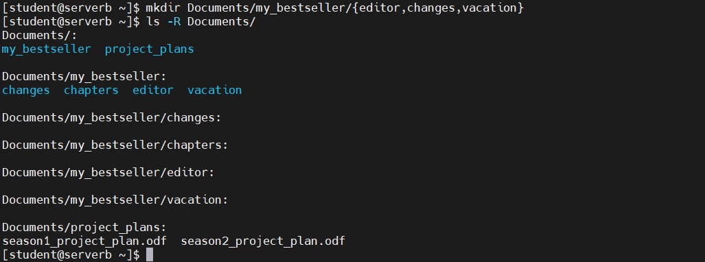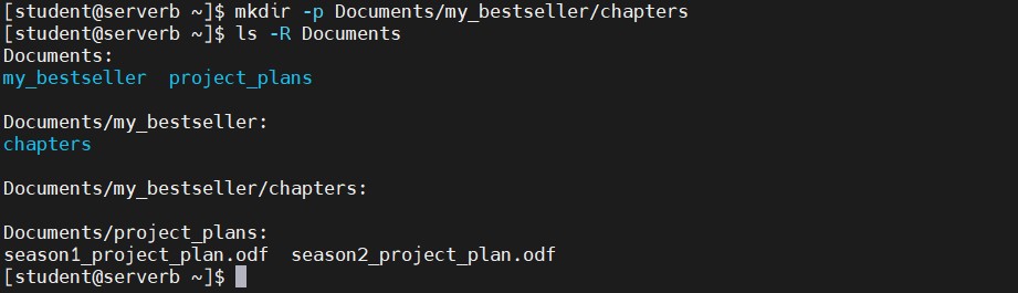 mkdir -p Documents/my_bestseller/chapters ls -R Documents