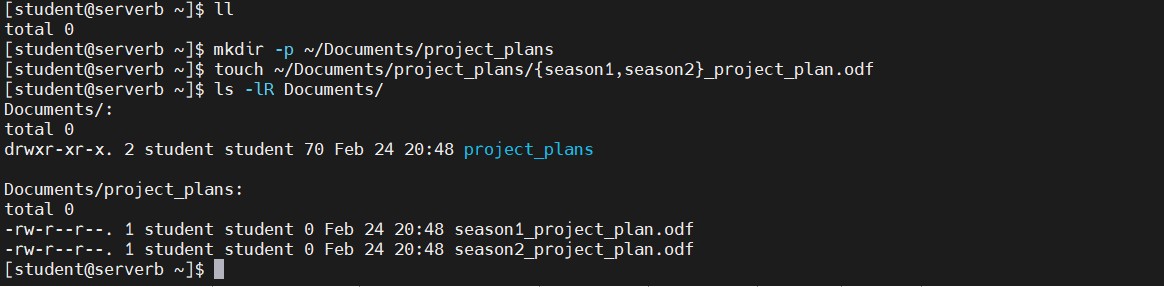 2.在Documents目录中创建一个名为project_plans的目录。Documents目录应该放到student用户的主目录中。在project_plans目录中创建两个空文件,取名为season1_project_plan.odf 和 season2_project_plan.odf.