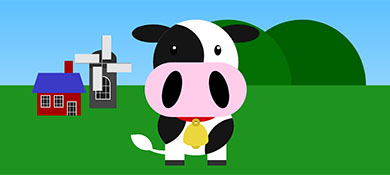 纯CSS3绘制的奶牛卡通画效果源码这是一款基于纯CSS3绘制的奶牛卡通画效果源码。画面中一片翠绿的牧场中央站立着一个卡通效果的奶牛,奶牛有着黑白相间的颜色,脖子上系着铃铛。远处有一个小屋和一座风车,...