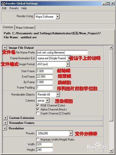 否则则使用默认的透视图摄影机 输出文件一般存放在项目文件夹的图像文件夹里