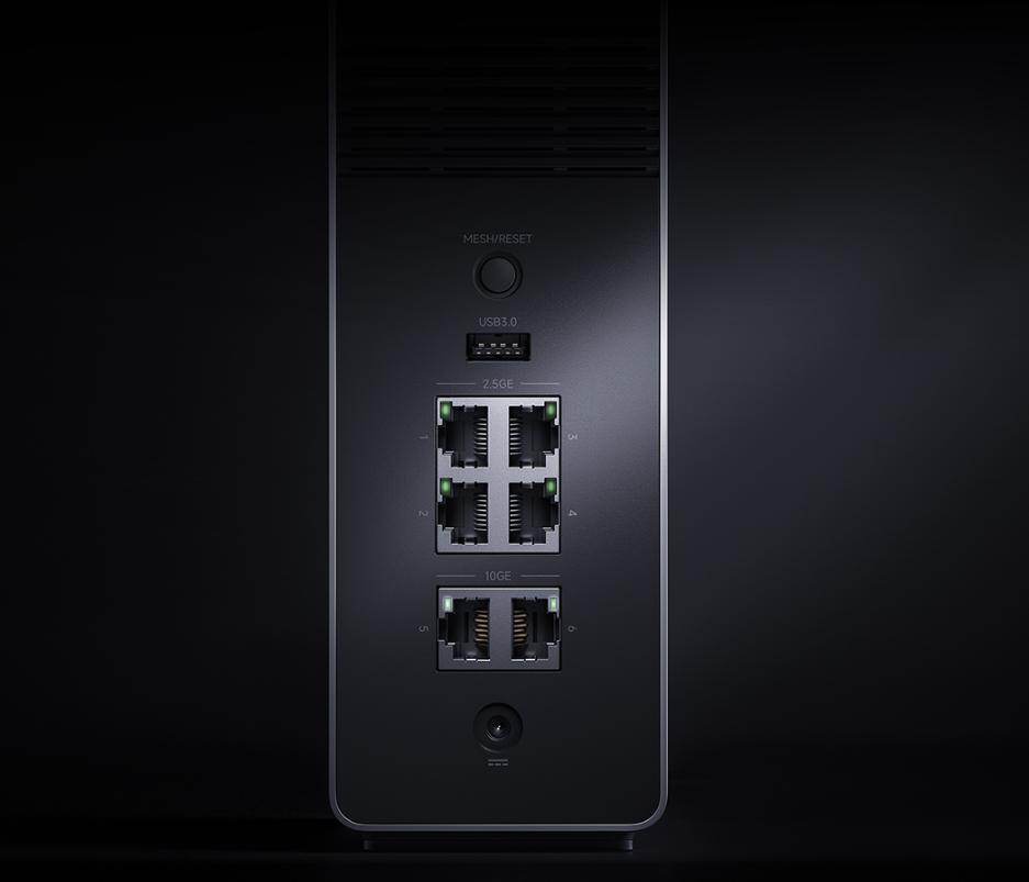 有线端,它有两个万兆网口,以及四个2.5G网口,无论是接NAS还是组内网,都给足了战未来的空间。