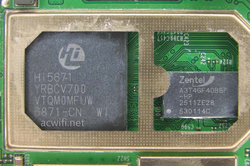 这款TL-7AP3622HI无线AP的CPU是用海思的,没想到吧!型号是Hi5671v700。之前在拆7DR3630 v4.0的时候,也是用它。从我查到的资料来看,暂定认为是A510架构,双核1.15GHz,不一定对。v700这个版本用了新的架构和工艺,所以功耗会比较低一些。