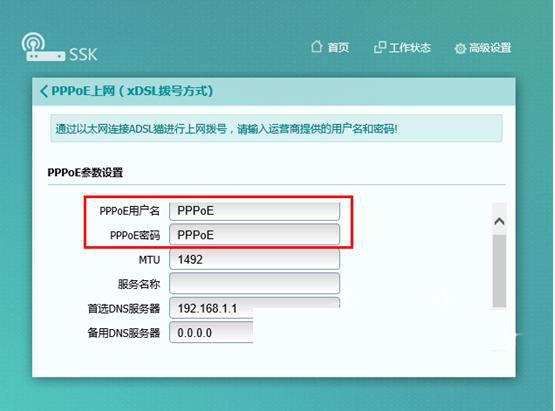 第七步:输入完成后,点击“应用”按钮即可。同时进入“工作状态”下查看宽带连接是否成功。