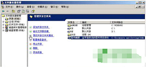 第1步,在开始菜单中依次单击“管理工具”→“文件服务器管理”菜单项,打开“文件服务器管理”窗口。在右窗格中选中需要设置访问权限的共享名(如“图书编撰”),并单击“更改共享文件夹属性”按钮,如图所示。