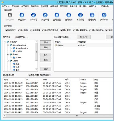 服务器共享文件夹监控软件、共享文件夹权限设置软件、共享文件权限管理