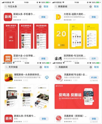 今日头条/天天快报/凤凰新闻/网易新闻等4款APP应用被限期下架