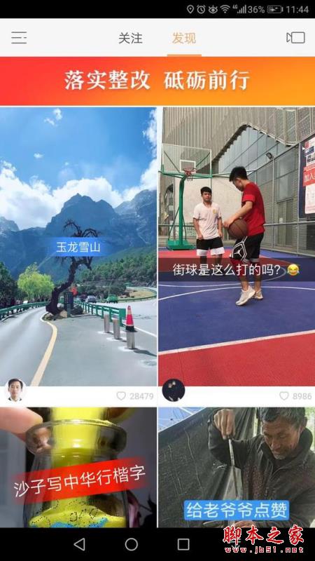 下载安卓新版本进行体验。打开新版快手,“落实整改 砥砺前行”的banner依然在发现页置顶,视频也多为阳光健康的各类生活内容
