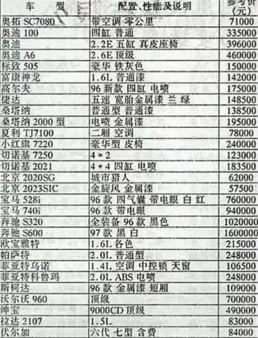 在八九十年代,小轿车还是不折不扣的奢侈品。进口车价格动辄几十万,以当时的收入水平,那是普通老百姓想都不敢想的物件儿。