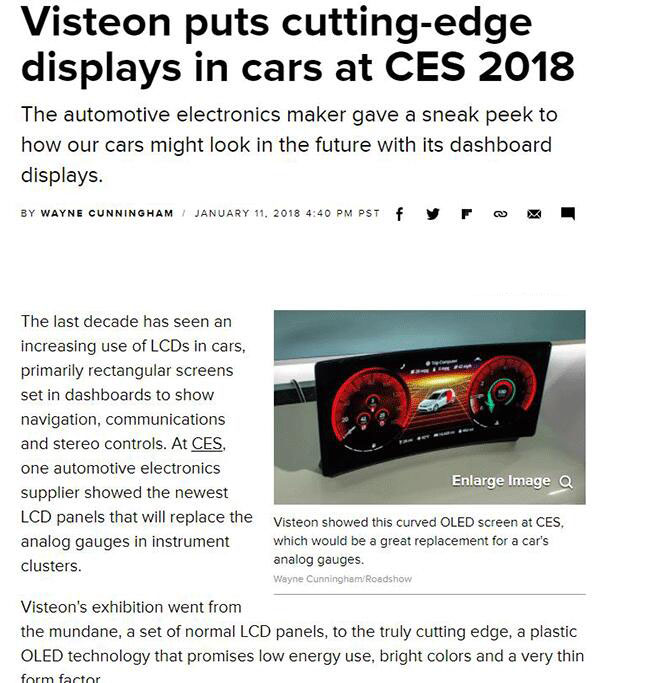 1月12日消息 据CNET报道,汽车配件制造商Visteon最近在CES 2018展会上展示出一款车载OLED仪表盘。下文为大家详细介绍... 18-01-12