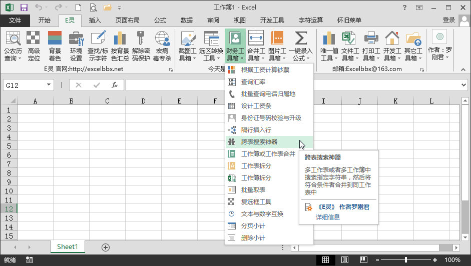 E灵的前身是Excel百宝箱,现改名为E灵。在改版的同时也增加了几十项功能,且修正了部分BUG,新增功能中最具实用性者当属“一键录入公式”。