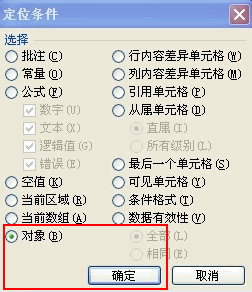 3、在弹出的界面选择“对象”,然后点击“确定”。