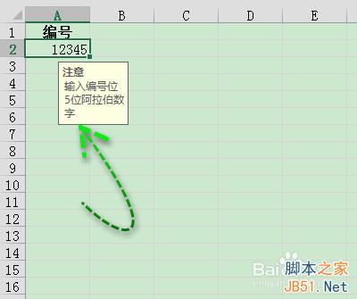 示例操作目的:以A列为号码(编码)列,要求是在A列只能键入5位数。