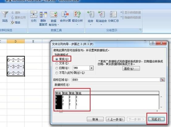 5、下一弹窗选择”常规“,观察下方样式正确,确定,分列完成;