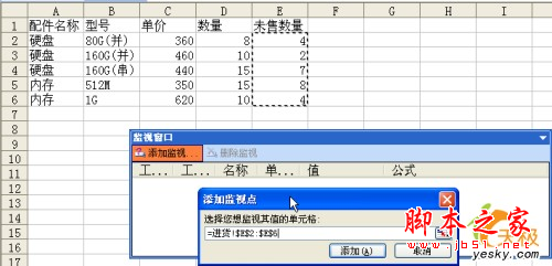如何使用Excel 2003里面地“监视窗口”工具同时看到另个工作中的数据