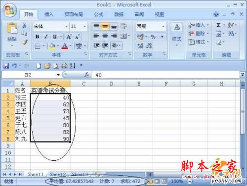 勾选“数值计数、最小值、最大值”这样我们对“英语考试分数”情况只要看看状态栏就了如指掌了。