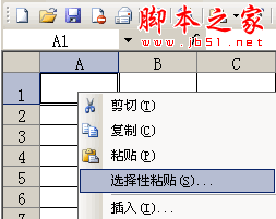 现在,切换到excel窗口,使用鼠标点击要粘贴的开始位置,如本例选择的是A1,然后点击右键并选择“选择性粘贴”。